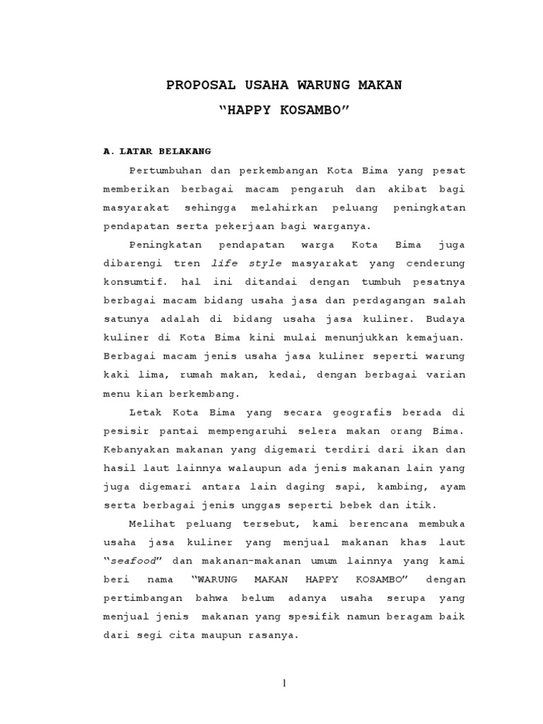 Contoh Proposal Usaha Rumah Makan Pdf Sketsa